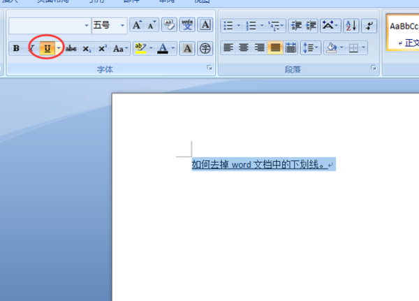 第三步:点击“U”按钮之后,选中文字的下划线便消除了,如下图所示: