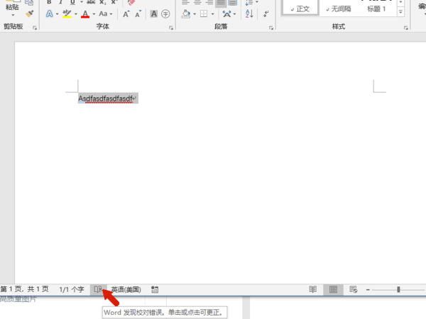 3、可以看到此事的英文是带有下划线的,该下划线是word发起的自动校对错误,我们点击如下图所示箭头位置的校对按钮。