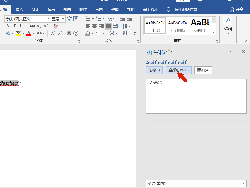 4、在弹出的拼写检查窗口中,我们选择全部忽略。