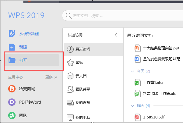 2,、打开Word软件后点击页面左上方的打开选项,选择需要打开复制的Word文档。