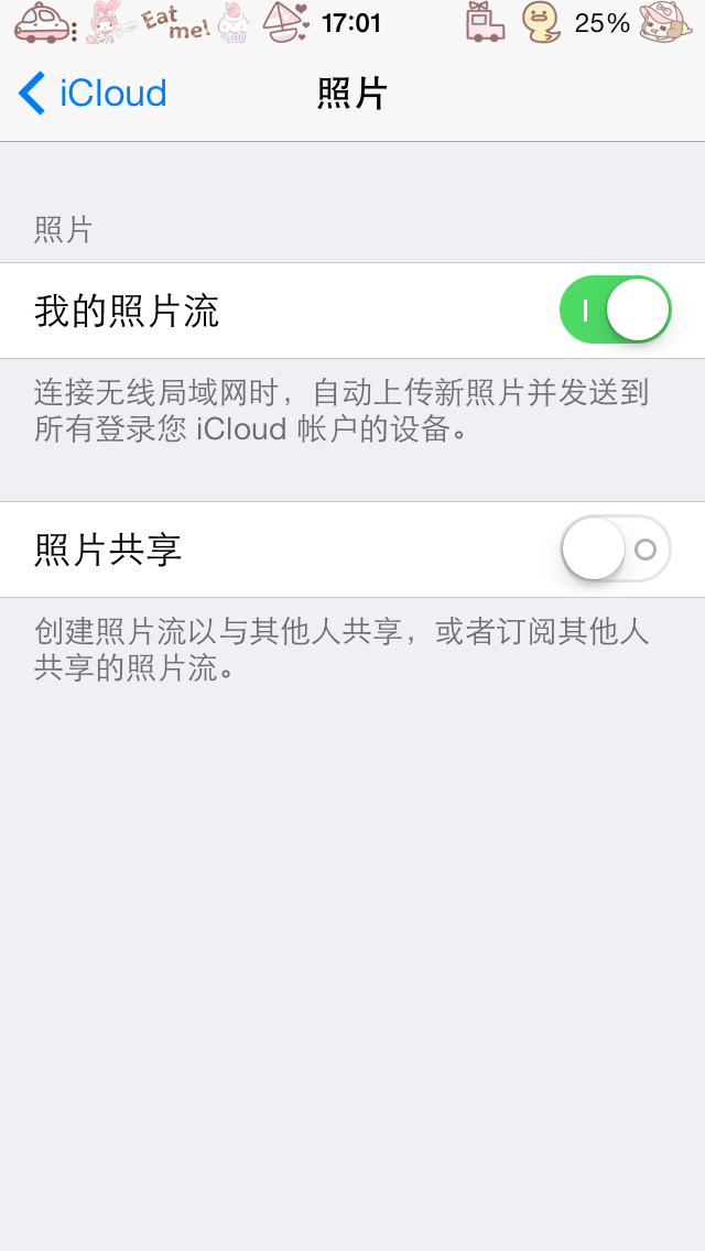 4、将“我的照片流”打开即可。
