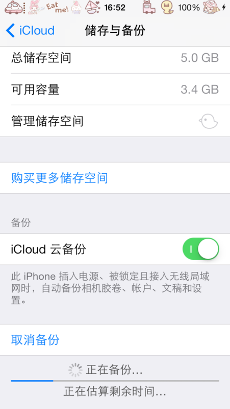 建议可以把iCloud中重要的数据都开启备份,可以在“储存与备份”中将“iCloud云备份”打开,在wifi网络正常的情况下,iPhone将自动备份数据到iCloud。