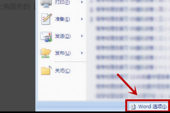 二、然后,在下拉菜单中点击“Word选项”,点击打开。
