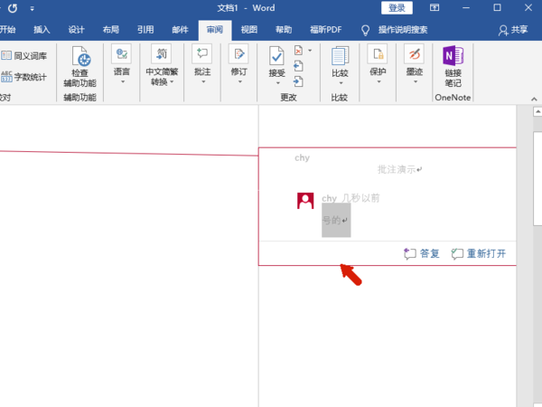 5、我们将鼠标移动到批注内容上可以进行答复以及解决操作,可以看到该批注已经被解决,如果出现其他问题需要重新编辑批注,可以直接点击重新打开即可。