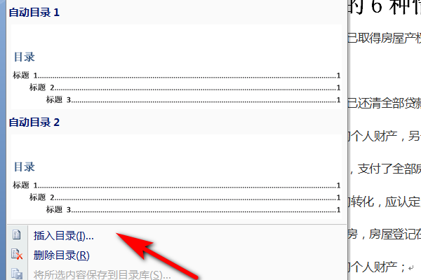 步骤二、自动生成目录及更新目录