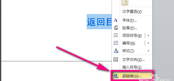 1、首先我们打开word文档,在要返回目录的位置输入“返回目录”,之后选中文字。