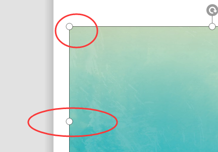 3、点击该图片,在图片的边角会出现白色的圆点。