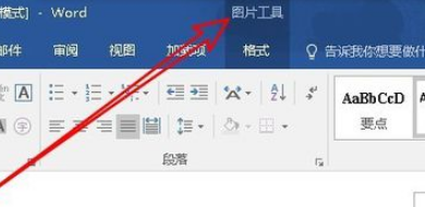 2、接下来在文档中随便选中一张图片,然后可以看到在菜单栏多了图片工具的菜单。