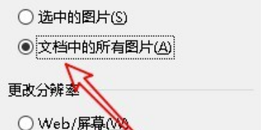 5、这时就会弹出压缩图片的窗口,在窗口中找到选择“文档中的所有图片”选项。