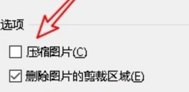 6、接下勾选“选项”中的“压缩图片”前面的复选框,最后点击确定按钮。