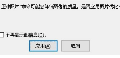 7、这时会弹出一个压缩图片命令可能会降低图像质量的警告窗口,点击“应用”按钮即可。最后保存文件,可以发现文件的体积明显减小了。