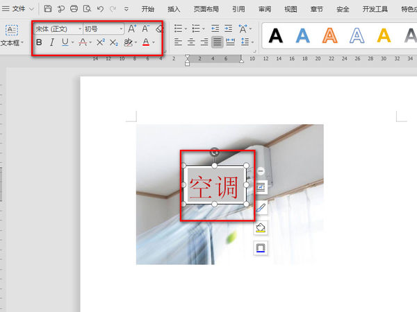 三、点击插入“文本框”后,接着在文本框内输入要进行添加水印的内容,输入后,再进行设置字体的颜色、大小等。