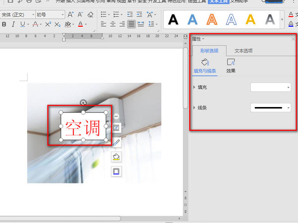 四、接着再点击刚输入的文本框的边框,就会弹出”属性“的功能框。