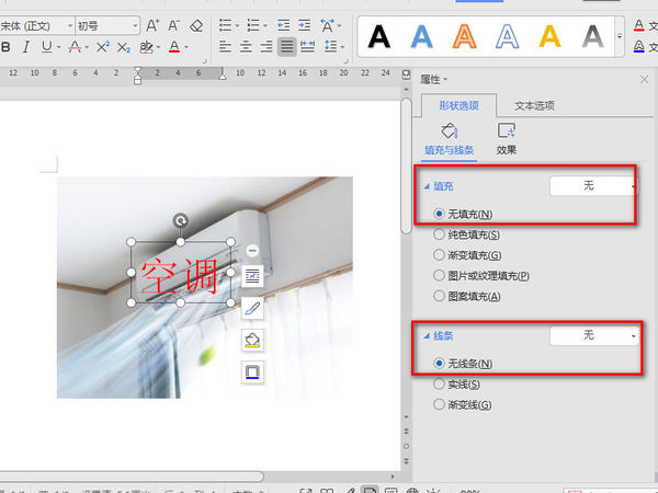 五、然后再在弹出的”属性“中将”填充“和”线条“功能选项都设置为无。