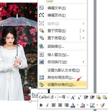 3、在文本框中输入做为水印LOGO的文字或图片,右击文本框,选择“设置形状格式”,如图: