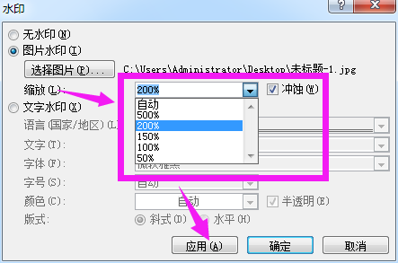 8、设置完水印选项之后,点击应用按钮,如图所示: