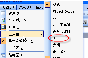 1.在“视图”菜单下的“工具栏”下打开“窗体”工具栏。