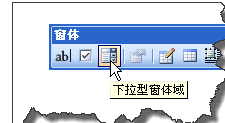 2.将鼠标移到指定位置,点“视图→工具栏→窗体”,弹出“窗体”工具栏,点“下拉型窗体域”按钮。