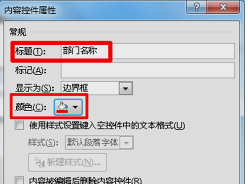 7、 在弹出的内容控件属性中,根据自己的需求,设置标题名称、颜色等,确定,完成。