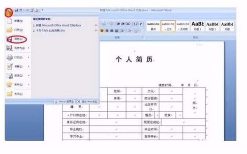 16、调整好,点击左上角图标,选择“保存”,也可以选‘另存为’自己需要的格式。这样一篇简单的“个人简历”表格就完成了!如下图