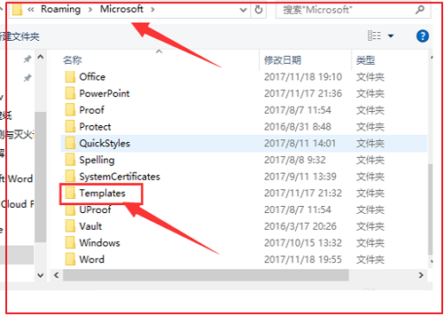 打开“Administrator”管理员文件夹后,打开“Application Data”文件夹,并在该文件夹中选择‘Mircrosoft’然后点击“Templates”文件夹。
