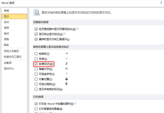 4、然后会在出现的页面里找到“段落标记”,点击去掉原来的对号,然后点击确认按钮