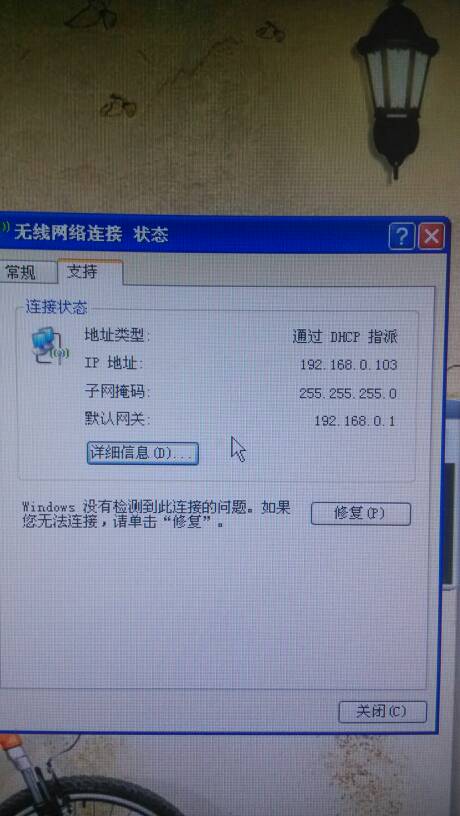 外网联接有问题。这种情况下外网链接出 了问题,也就是上网猫到网络服务提供商 之间这段出了问题。要找网络提供商解决 问题。 如果外网连接正常还出现问题,那你看看 你的"无线网络连接"-点一下“
