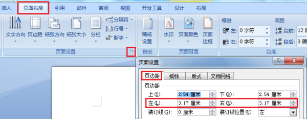 1、依次点击“页面布局”、“页面设置”右下的小箭头,在出现的“页面设置”对话框中,根据需要调整左、右页边距为不小于零就行了。