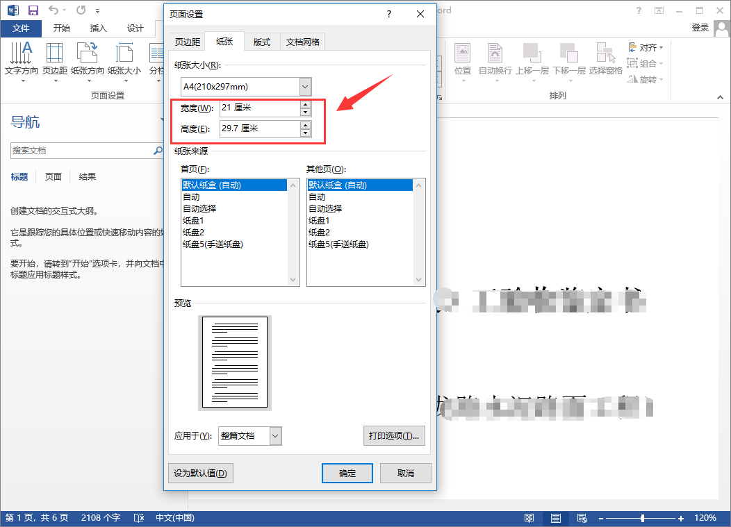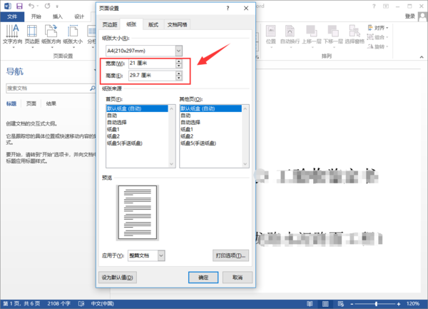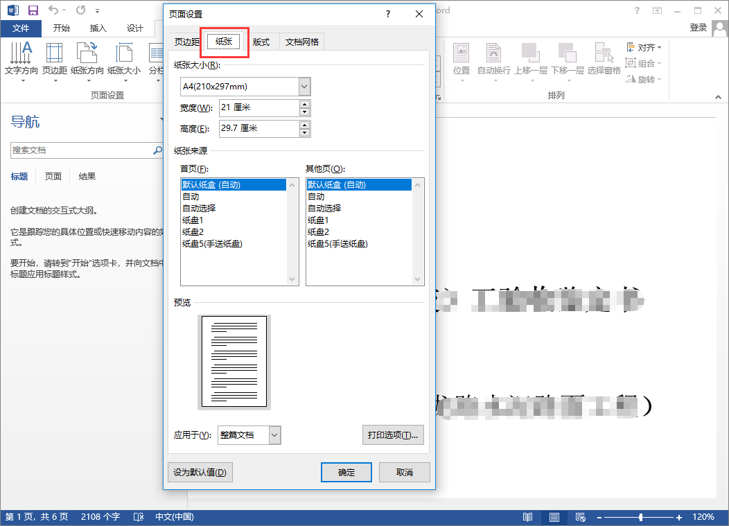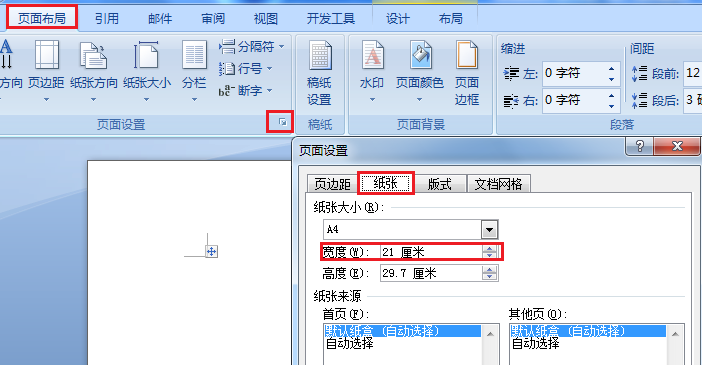 3、打开页面设置功能菜单后选择【纸张】功能页签。