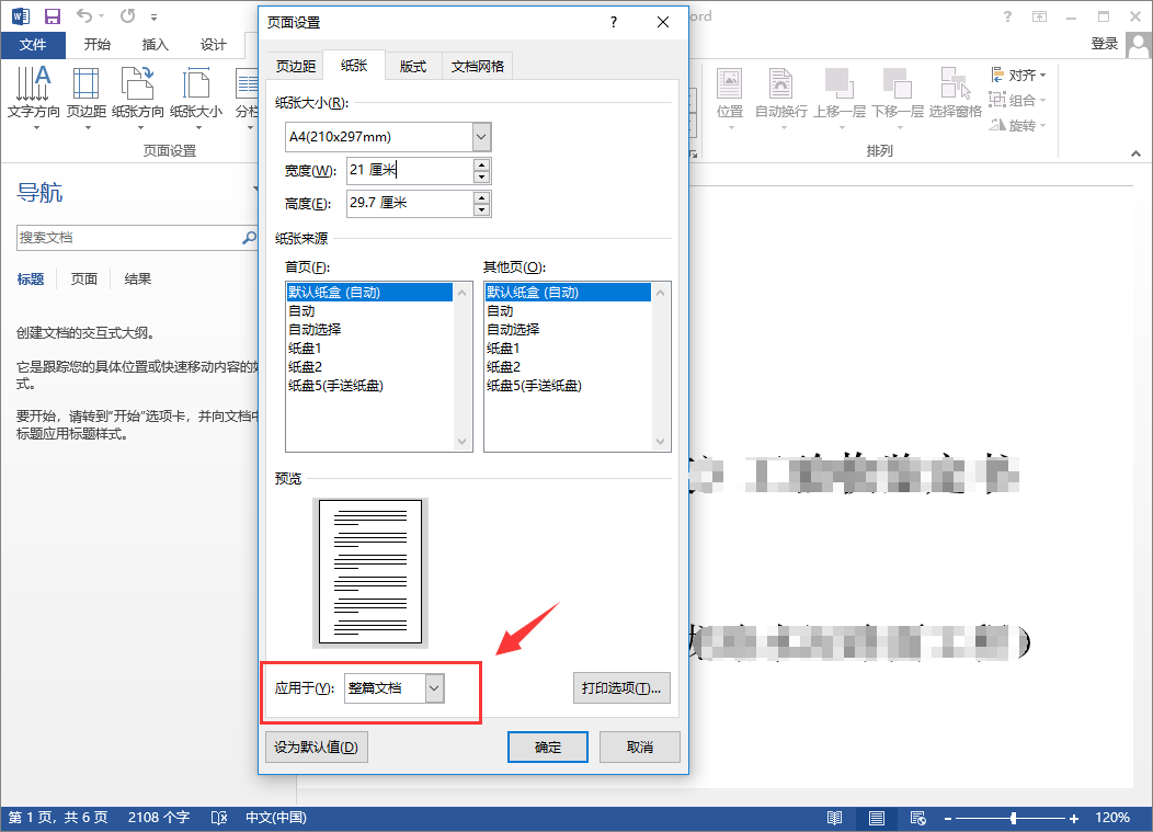 可以设置为整篇文档,也可以设置为插入点后面的页面。