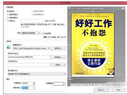 如果对整个文件另存文件都未减小多少,同时你的PDF文件又较大,那么我们有必要进行下一了,也是最重要的。这里我们用pdfv_portable开始拆分PDF文件,用pdfv_portable打开要处理的PDF,选文件-导出-导出为图像(我这里举例采用的文件是已经比较小了,只是用来做演示),新建个文件夹用于放单页的文件