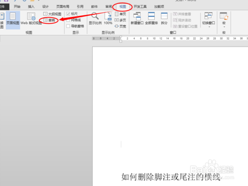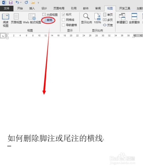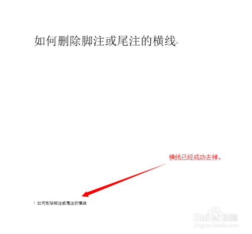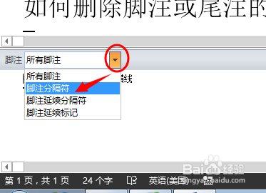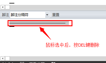 点击底部窗口中的下拉菜单,选择 脚注分隔符 项,鼠标选中横线,按键盘DEL键删除。