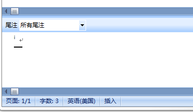 2 视图-〉脚注 (倒数第四个选项),鼠标点击脚注之后,页面分成了上下两层。下层开头显示:尾注,旁边有下拉菜单,包括四个选项:所有尾注(默认),尾注分隔符,尾注延续分隔符,尾注延续标记。