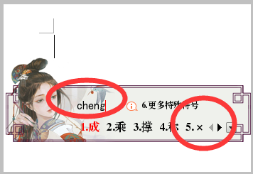 1、利用输入法,在Word中输入“cheng”或者“cha”,即可在输入法中选择第五项“×”符号。