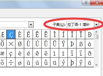 3、在打开的对话框中将子集选择为“拉丁语-1增补”。