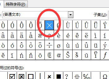 4、然后在此栏目下找到需要的“×”符号,点击插入或者双击该符号插入页面。
