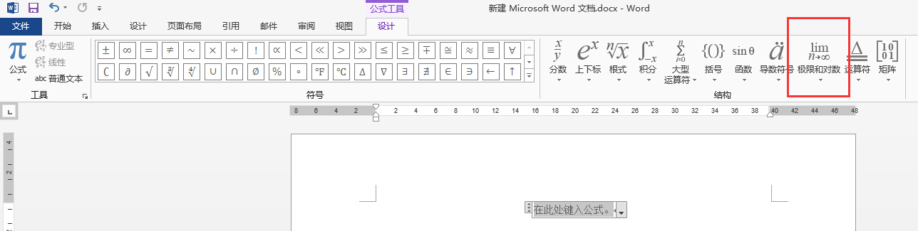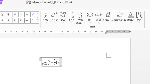 4、点击该公式,limn→∞就出现在word文档中,将n修改为x即可: