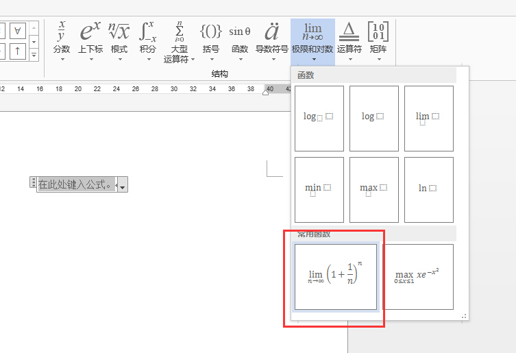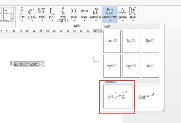 3、点击“极限和对数”下的小三角,选择常用函数,如下图红框所示: