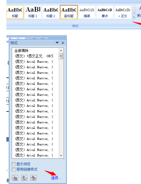 1、打开word,单击”开始“面板,点击“样式”的右下角三角号,出现样式图表