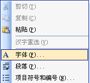2、单击鼠标右键,弹出快捷菜单,选择字体命令,如图所示;