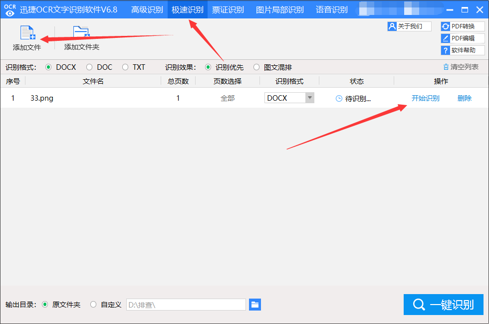 打开ocr工具,点击上面的“极速识别”功能。