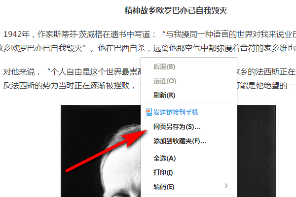 2、然后单击鼠标右键,选择网页另存为。