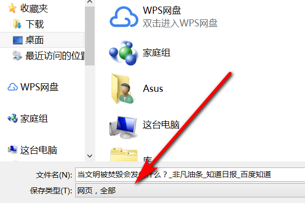 3、接着在弹出的保存类型选择网页,全部。