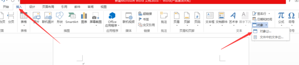现在启动Excel新建或打开一工作表,在“插入”选项卡,单击“文本”组中的“对象”。
