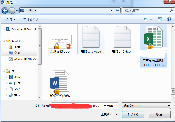 打开“浏览”对话框,选择需要插入的Word文档,然后单击“插入”。