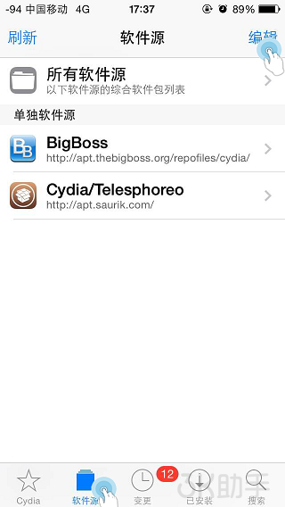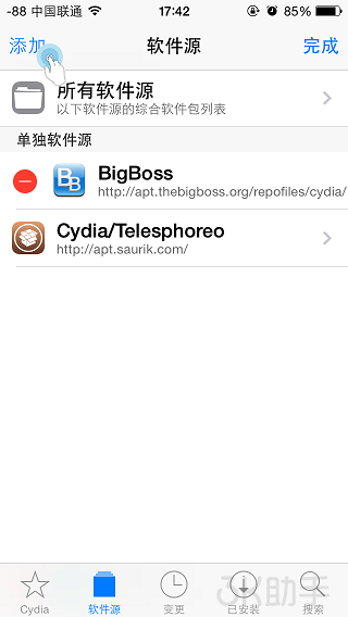 打开cydia-软件源(下面)-编辑(右上角)-添加(左上角),输入cydia.so就可以了