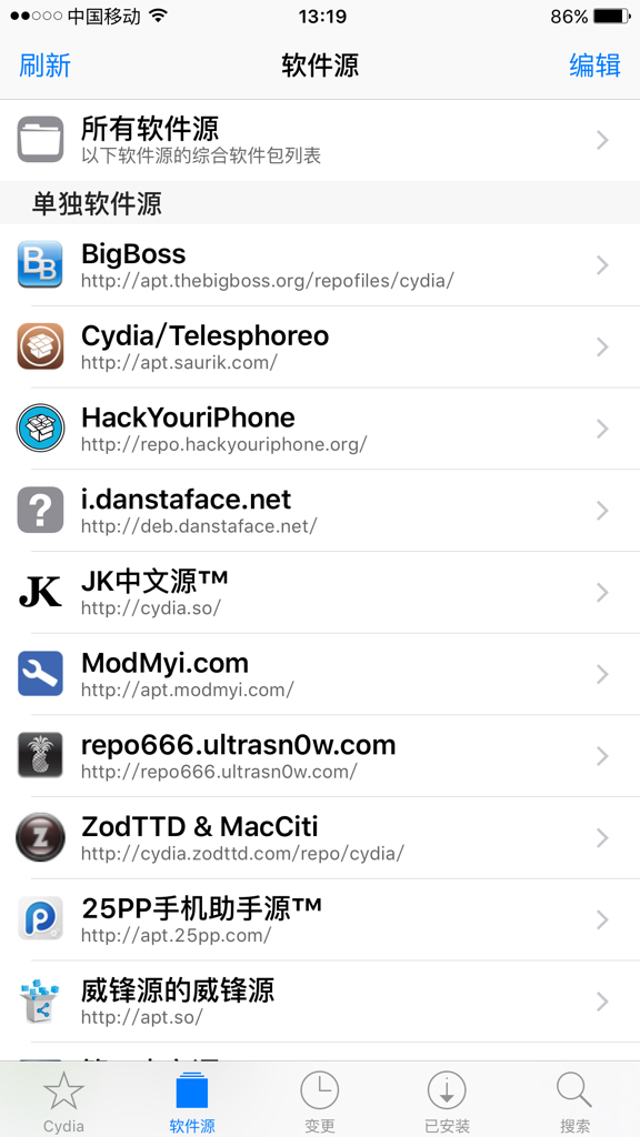iphone5ios9.0.2越狱后怎么添加jk.中文源?