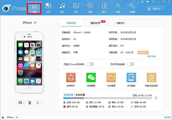 iTools——创想天空第一个核心产品,是一款简洁有着“无需越狱,即可同步”功能的苹果设备同步管理软件,也是继iTunes后全球第二款支持对iOS管理的软件。它可以让你非常方便的完成对iOS设备的管理,包括信息查看、同步媒体文件、安装软件、备份SHSH等功能。
