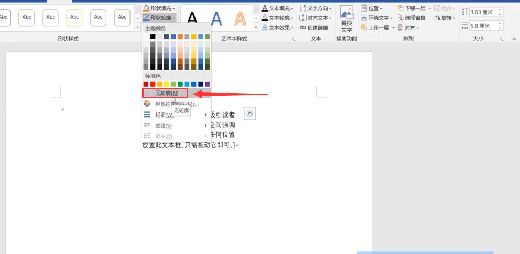 在word2010里怎样将文本框的框去掉