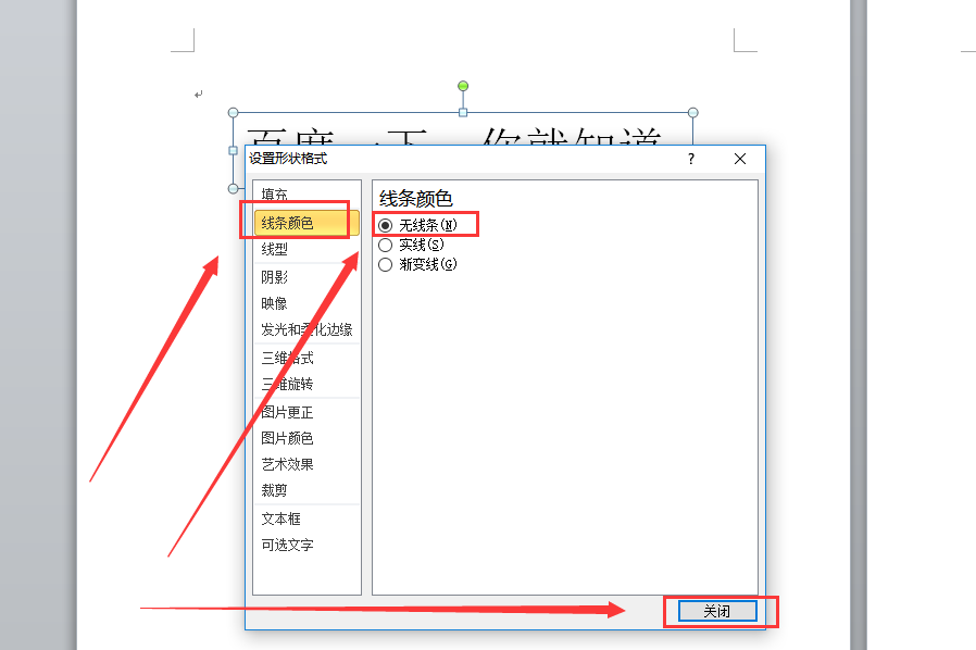 3、点击左侧的“线条颜色”并在右侧选项中选择“无线条”,然后点击下面的“确定”按钮即可。